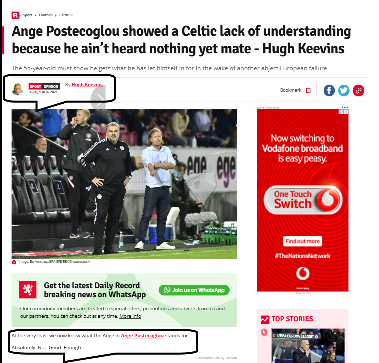 Last Sunday Hugh Keevins was working himself into a frenzy over the prospect of Celtic losing 10 goals to Atalanta, more directly it was about Brendan Rodgers losing double figures in Europe.